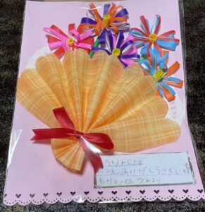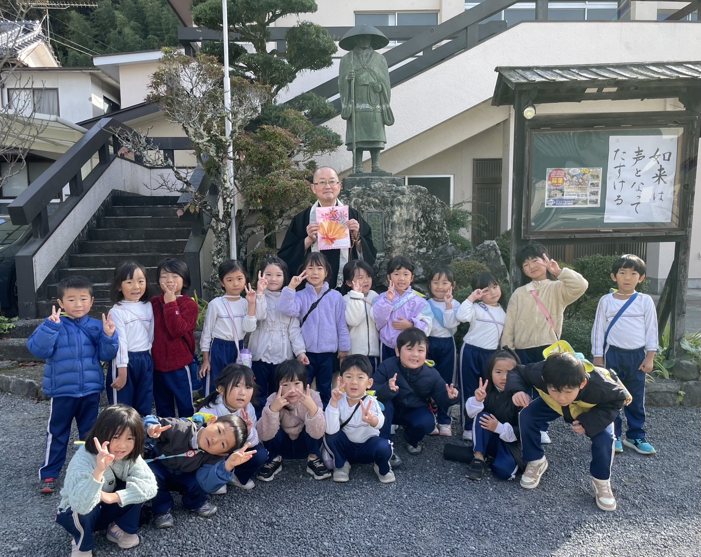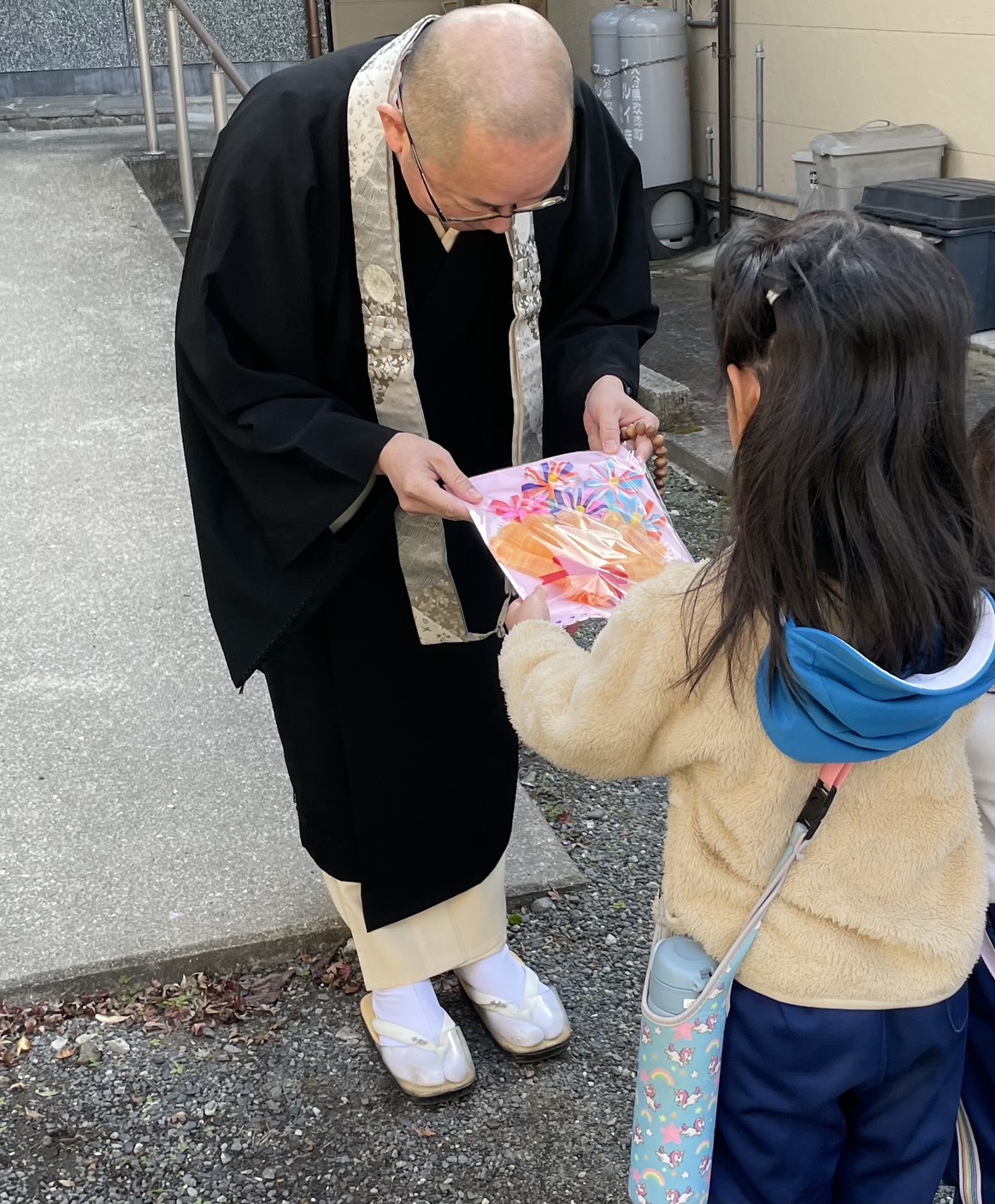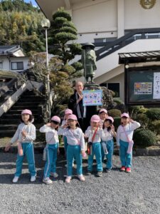 また、11月21日(金)には、くすのきこども園の園児が来寺し、勤労感謝の日が近いことから、日頃のお礼にと「ありがとう」をもらいました。