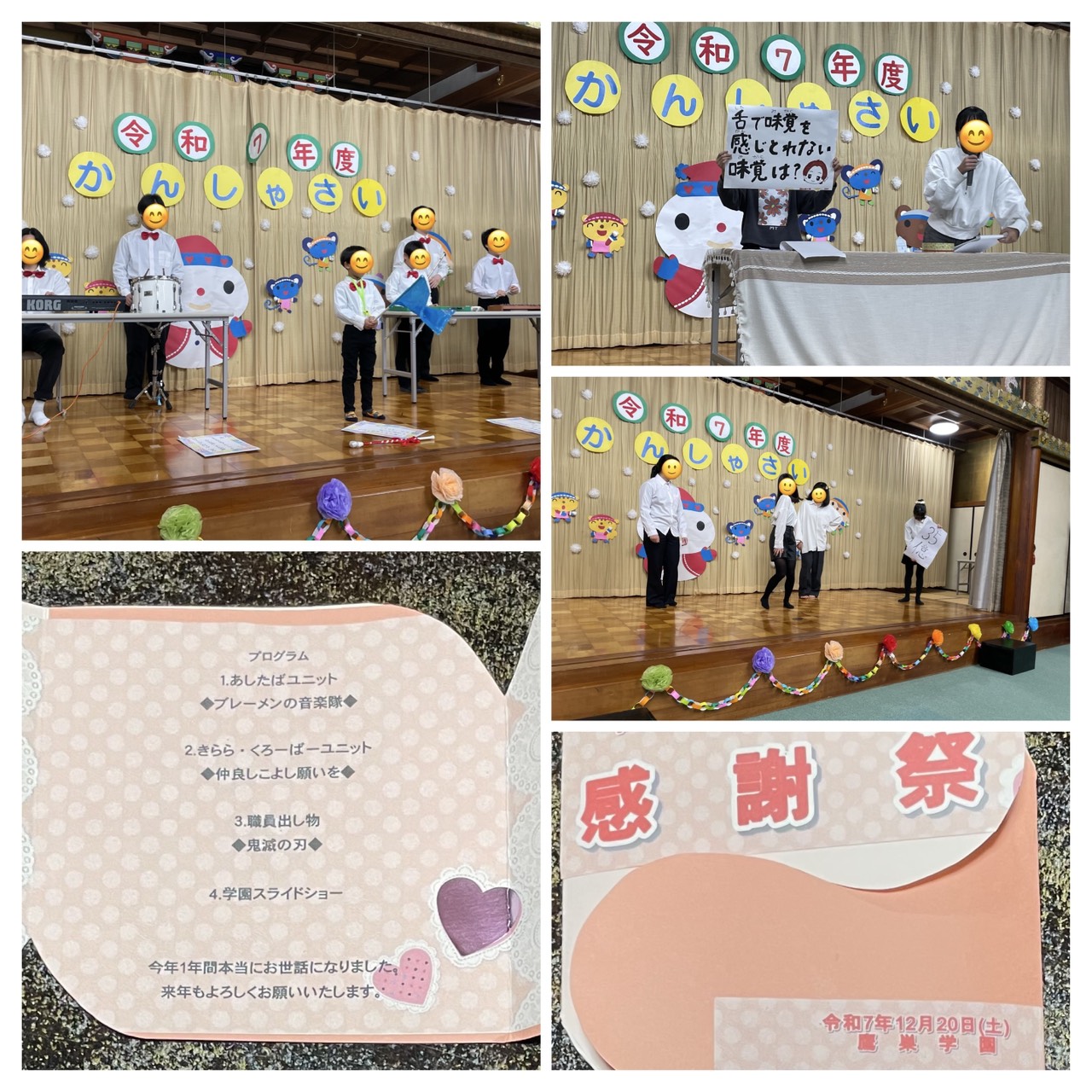 鷹巣学園感謝祭! 2025年12月22日 最終更新日時 : 2025年12月26日 光林寺 12月20日(土)10時から、恒例の児童養護施設鷹巣学園感謝祭を今年も開催しました。お世話になったこども園や小中高学校の先生方、地域の方々をお招きしました。子どもたちの笑顔に癒され励まされた時間でした。最後の職員出し物が「鬼滅の刃」。煉獄杏寿郎も登場し感動しました。皆様、今年もお世話になり、本当にありがとうございました!